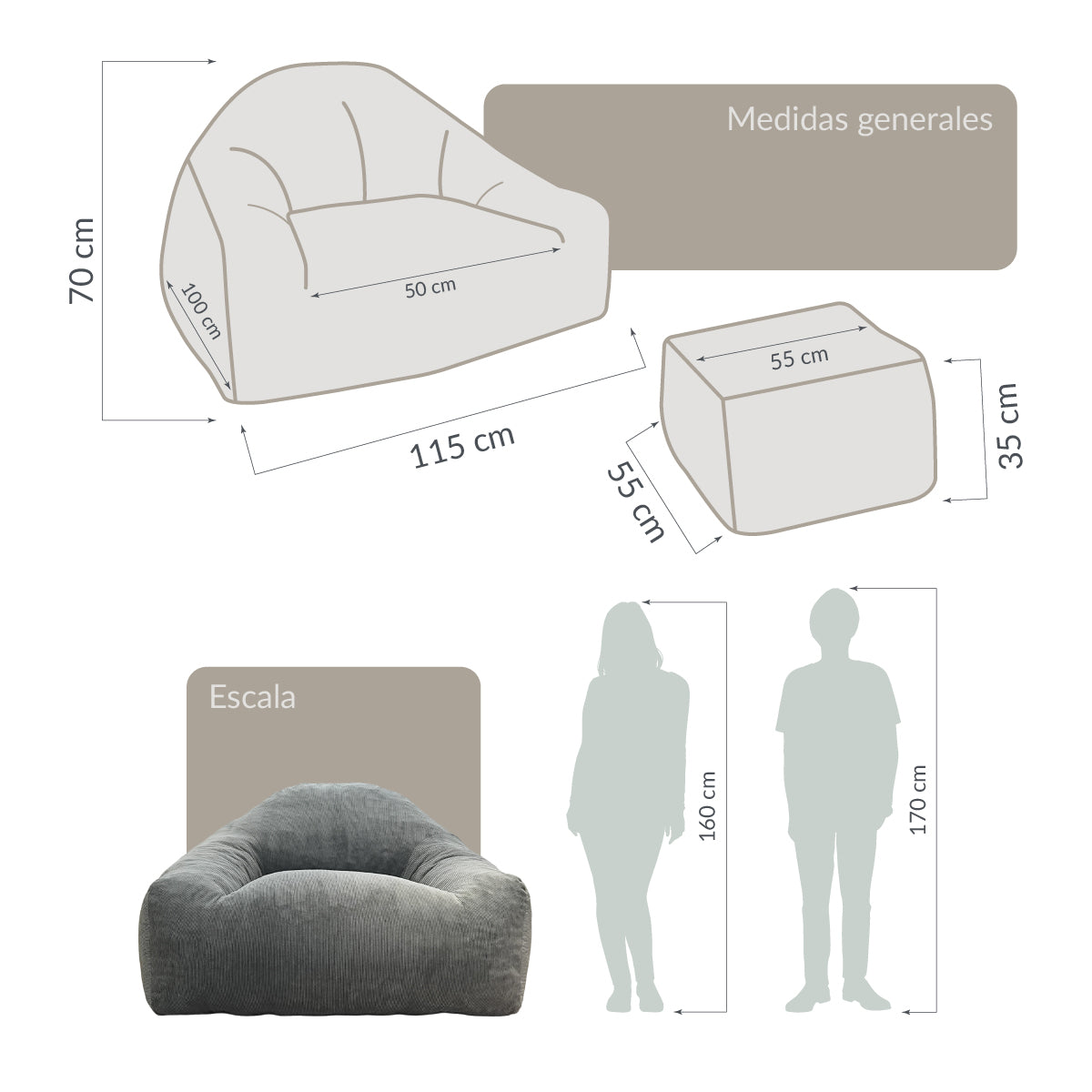 Sofá: 115*100*70 cm +Ottoman 55*55*35 cm