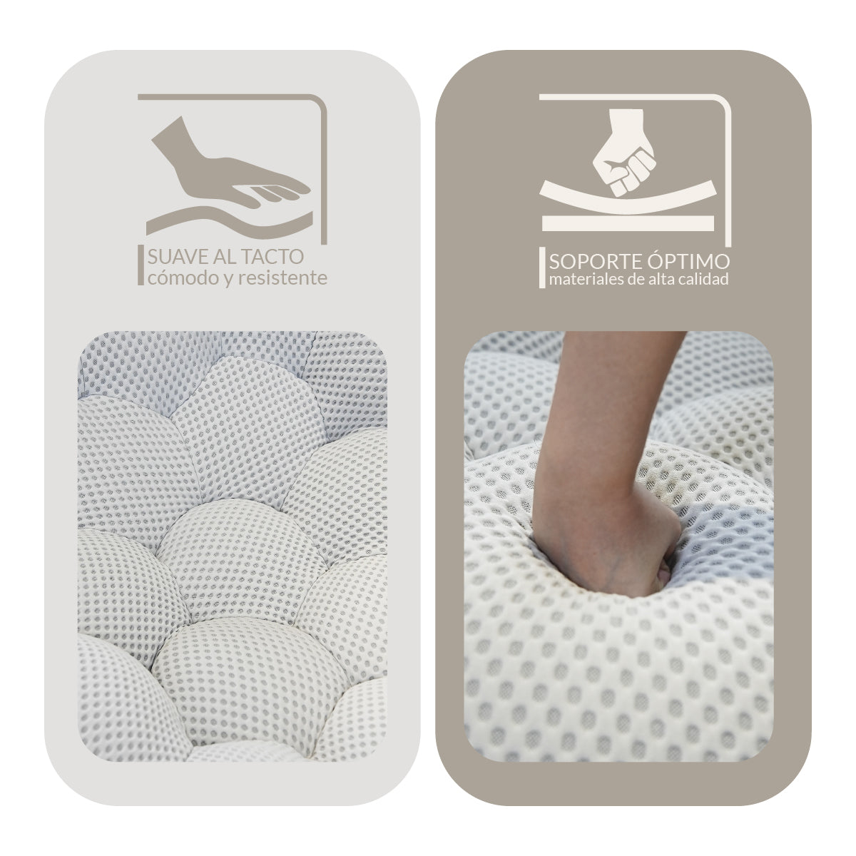 - Cojín de espuma de alta densidad, fuerte soporte.