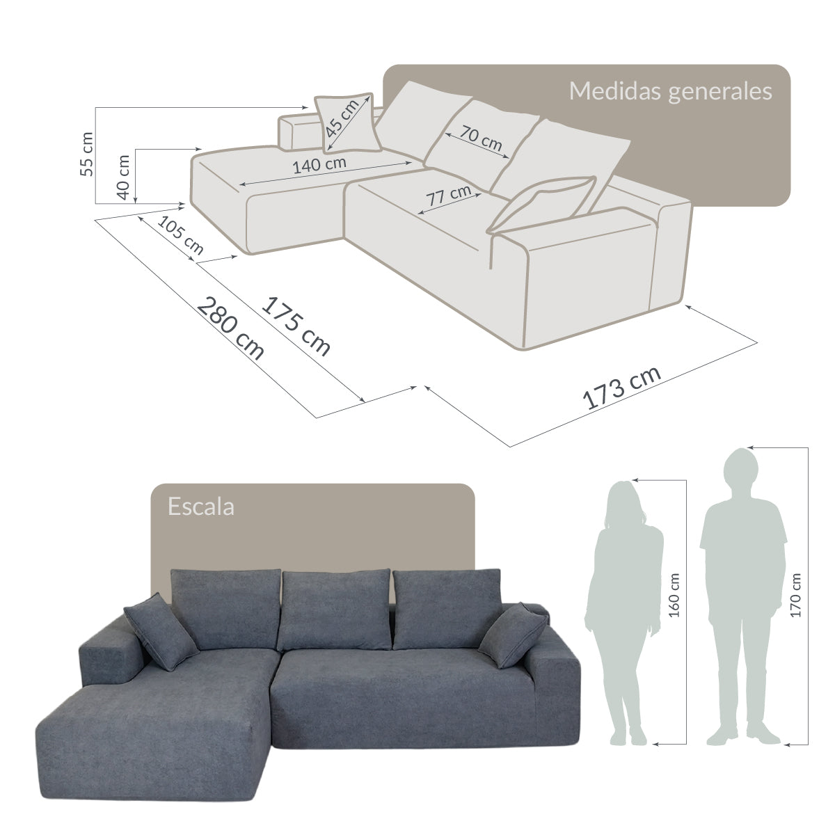 Sofá izquierdo: 112*175*82 cm + sofa derecho 175*105*82 cm