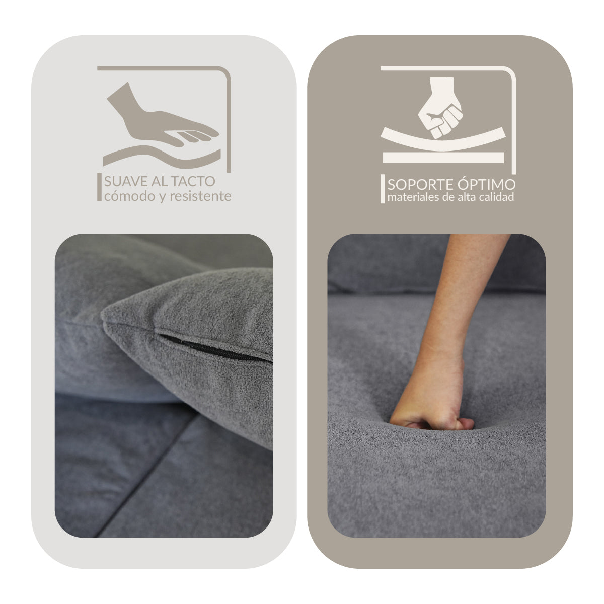 - Cojín de espuma de alta densidad, fuerte soporte.