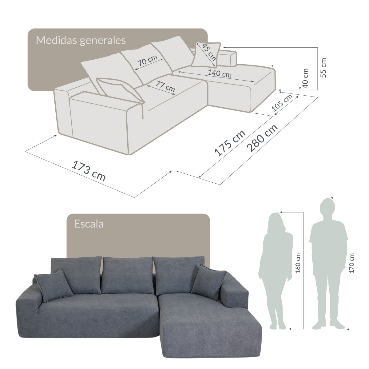 Sofá derecho: 105*173*86 cm + asiento izquierdo 173*105*86 cm