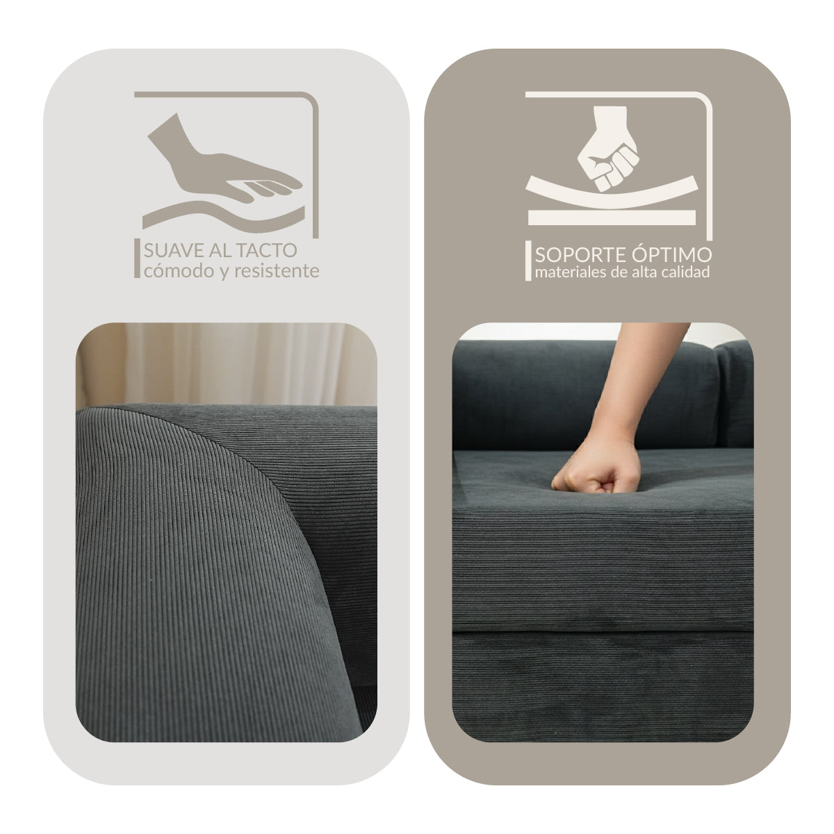 - Cojín de espuma de alta densidad, fuerte soporte.