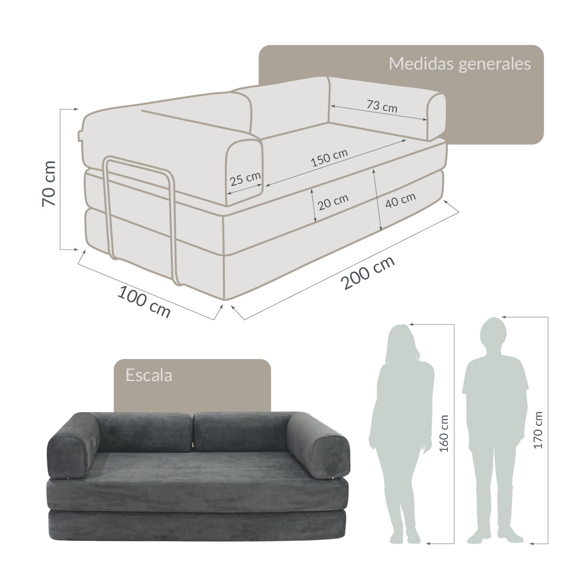 Sofá: 200*100*70 cm