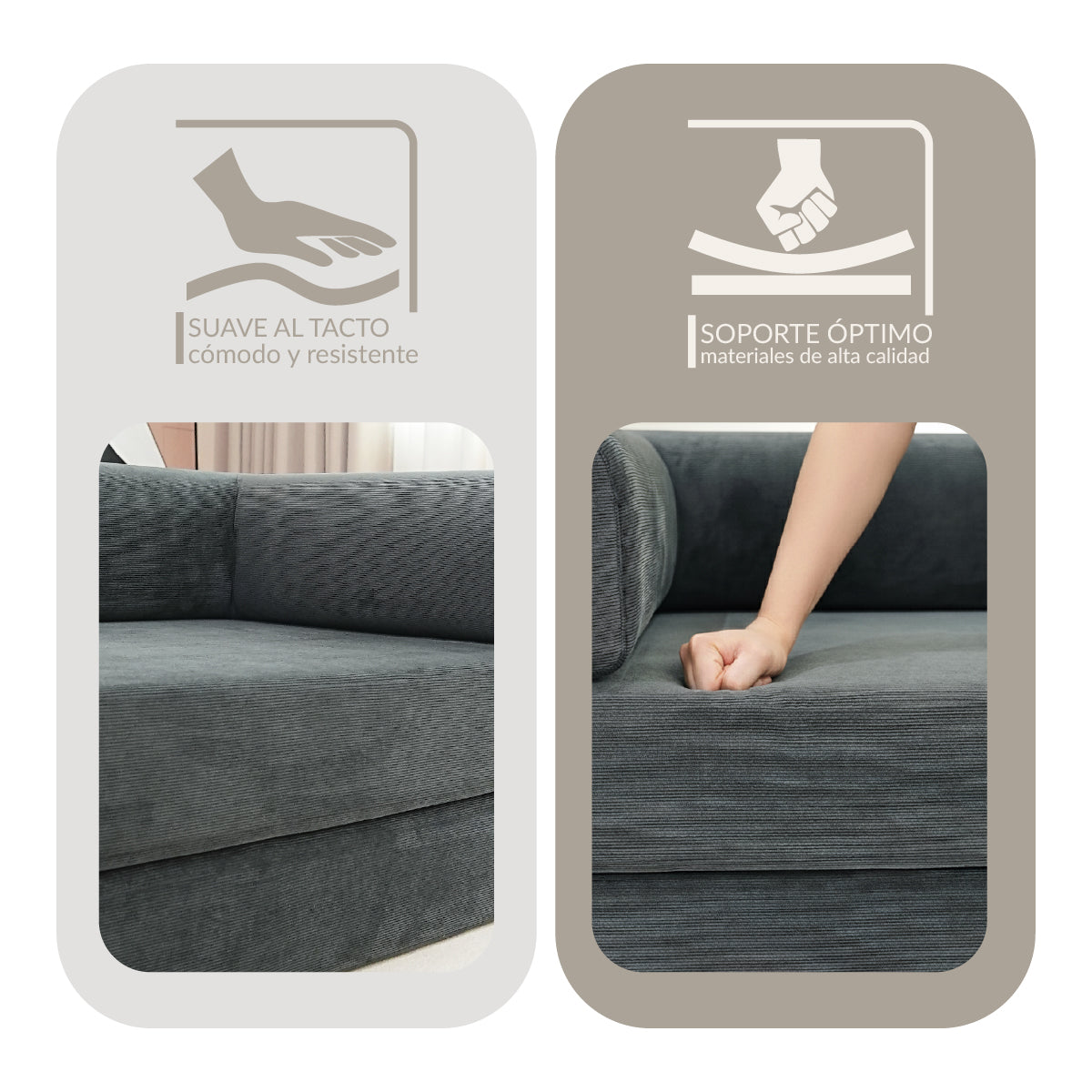- Cojín de espuma de alta densidad, fuerte soporte.