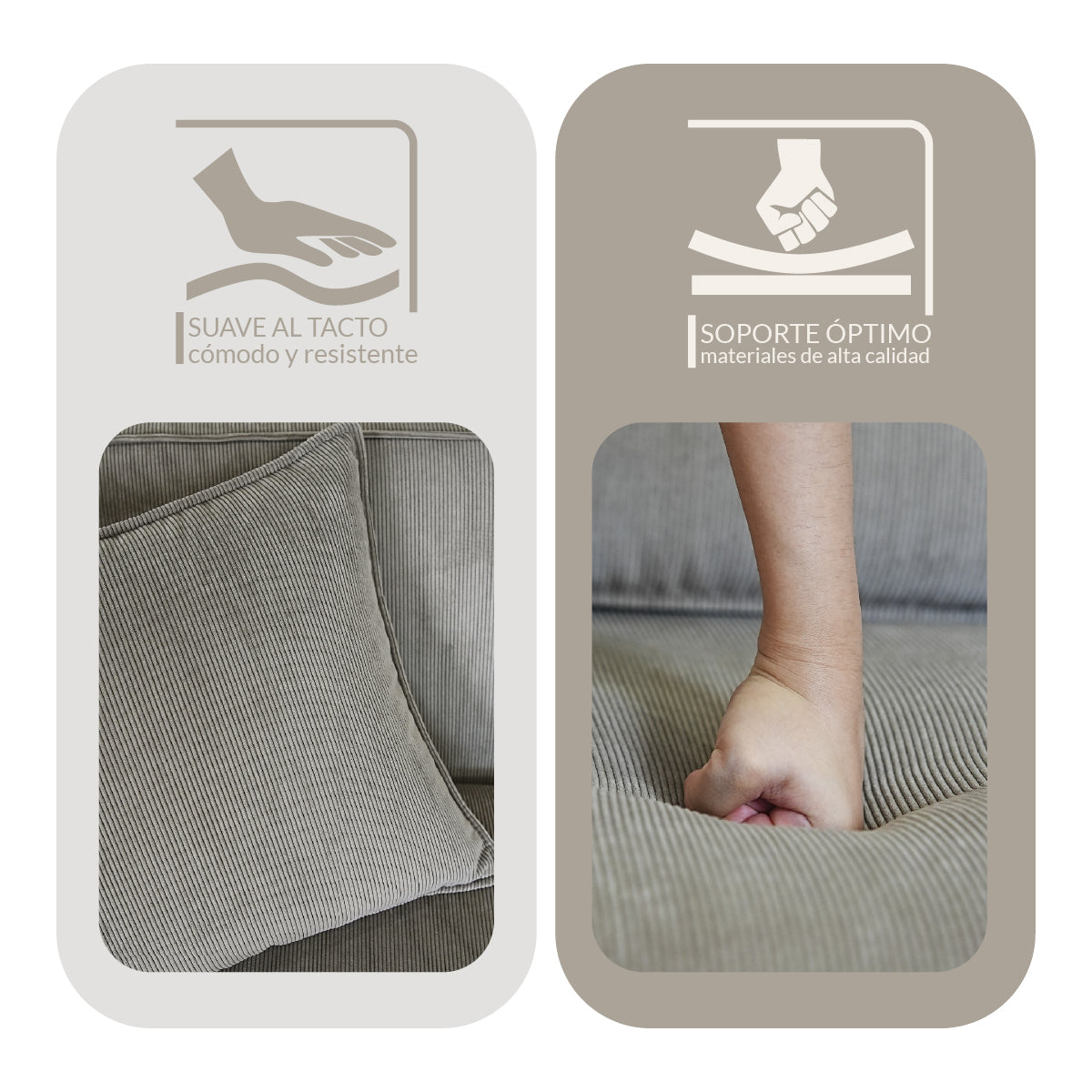 - Cojín de espuma de alta densidad, fuerte soporte.